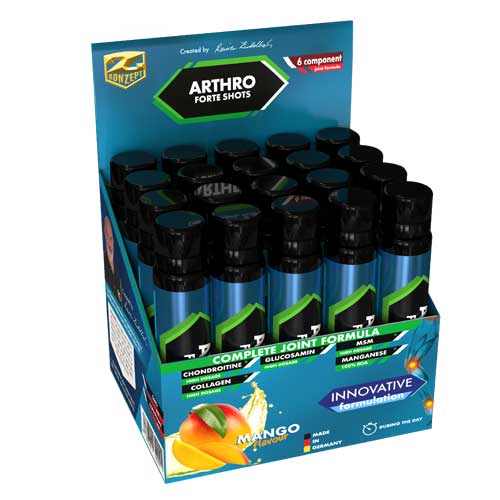 Arthro Forte Shots – 20x25ml KZ este un supliment alimentar lichid cu o formulă avansată de colagen, glucozamină, condroitină, MSM, vitamina B6 și mangan. Ambalat practic în fiole, cu gust de mango, este soluția ideală pentru cei care doresc să își completeze dieta zilnică într-un mod simplu, gustos și eficient.