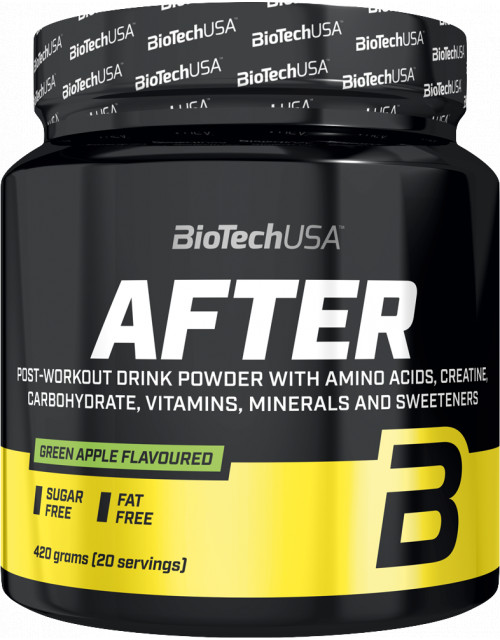 BioTechUSA After este un praf cu aroma pentru bautura, complex, pentru dupa antrenament, cu ingrediente active ce aduc beneficii organismului dupa antrenament. Contine aminoacizi esentiali, carbohidrati complecsi si creatina monohidrat micronizata. Pentru un efect favorabil, luati 3 g de creatina zilnic.