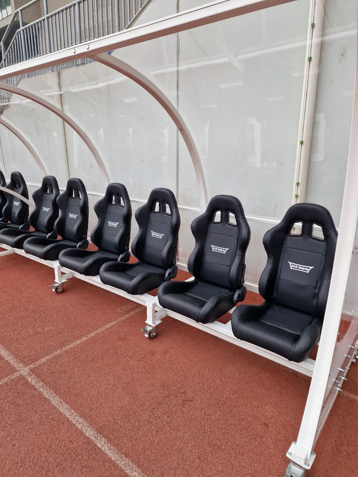 Băncile oferă confort jucătorilor și antrenorilor, asigurând o vedere panoramică de 360°. Se remarcă prin durabilitatea îndelungată și portabilitatea excelentă. Este disponibilă o gamă variată de culori și stiluri pentru scaune, iar culoarea panourilor poate fi personalizată. Cadrul general este sudat și asamblat din țevi pătrate din oțel de 50×50 mm, cu grosimea peretelui de 2,5 mm.