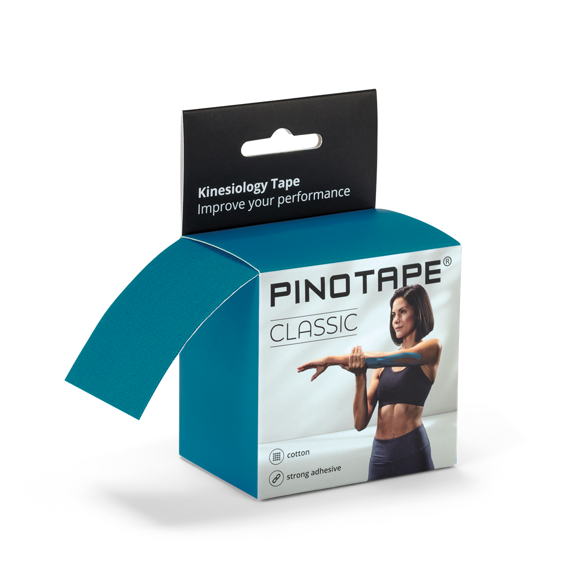 Banda PINOTAPE Classic, realizată din bumbac respirabil, este ideală pentru tratamentul de susținere în caz de dureri sau accidentări. Datorită conținutului de bumbac, banda este plăcută la contactul cu pielea. Adezivul acrilic aplicat în formă de valuri asigură o fixare puternică, care poate dura până la cinci zile. Prin proprietățile sale permeabile la aer și apă, banda aderă sigur și poate fi îndepărtată fără a afecta pielea. Cutia practică tip dispenser ajută la păstrarea ordinii și permite tăierea benzii la lungimea dorită. PINOTAPE este sinonim cu benzi kinesiologice de înaltă calitate, apreciate atât de profesioniști, cât și de utilizatori obișnuiți.