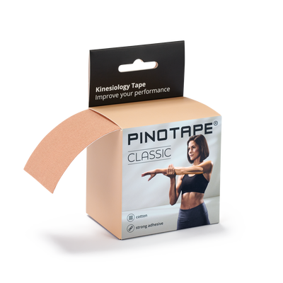 Banda PINOTAPE Classic, realizată din bumbac respirabil, este ideală pentru tratamentul de susținere în caz de dureri sau accidentări. Datorită conținutului de bumbac, banda este plăcută la contactul cu pielea. Adezivul acrilic aplicat în formă de valuri asigură o fixare puternică, care poate dura până la cinci zile. Prin proprietățile sale permeabile la aer și apă, banda aderă sigur și poate fi îndepărtată fără a afecta pielea. Cutia practică tip dispenser ajută la păstrarea ordinii și permite tăierea benzii la lungimea dorită. PINOTAPE este sinonim cu benzi kinesiologice de înaltă calitate, apreciate atât de profesioniști, cât și de utilizatori obișnuiți.