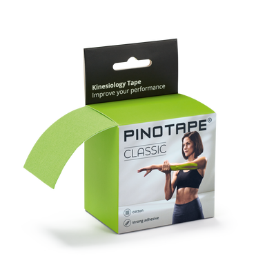 Banda PINOTAPE Classic, realizată din bumbac respirabil, este ideală pentru tratamentul de susținere în caz de dureri sau accidentări. Datorită conținutului de bumbac, banda este plăcută la contactul cu pielea. Adezivul acrilic aplicat în formă de valuri asigură o fixare puternică, care poate dura până la cinci zile. Prin proprietățile sale permeabile la aer și apă, banda aderă sigur și poate fi îndepărtată fără a afecta pielea. Cutia practică tip dispenser ajută la păstrarea ordinii și permite tăierea benzii la lungimea dorită. PINOTAPE este sinonim cu benzi kinesiologice de înaltă calitate, apreciate atât de profesioniști, cât și de utilizatori obișnuiți.