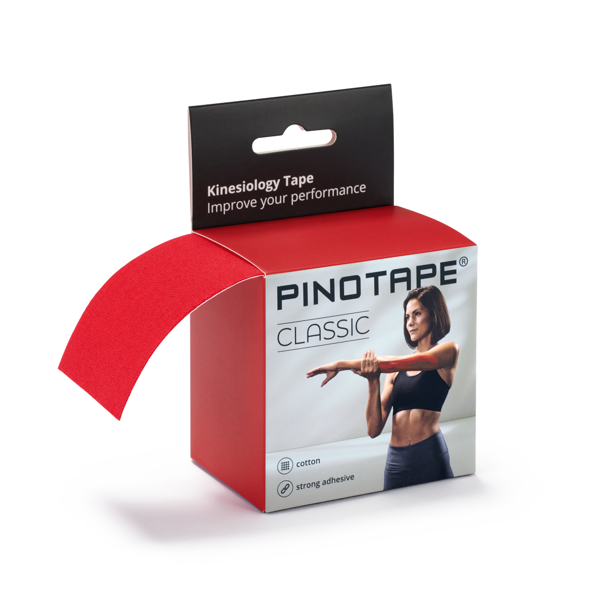 Banda PINOTAPE Classic, realizată din bumbac respirabil, este ideală pentru tratamentul de susținere în caz de dureri sau accidentări. Datorită conținutului de bumbac, banda este plăcută la contactul cu pielea. Adezivul acrilic aplicat în formă de valuri asigură o fixare puternică, care poate dura până la cinci zile. Prin proprietățile sale permeabile la aer și apă, banda aderă sigur și poate fi îndepărtată fără a afecta pielea. Cutia practică tip dispenser ajută la păstrarea ordinii și permite tăierea benzii la lungimea dorită. PINOTAPE este sinonim cu benzi kinesiologice de înaltă calitate, apreciate atât de profesioniști, cât și de utilizatori obișnuiți.