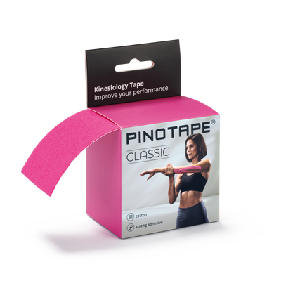 Banda PINOTAPE Classic, realizată din bumbac respirabil, este ideală pentru tratamentul de susținere în caz de dureri sau accidentări. Datorită conținutului de bumbac, banda este plăcută la contactul cu pielea. Adezivul acrilic aplicat în formă de valuri asigură o fixare puternică, care poate dura până la cinci zile. Prin proprietățile sale permeabile la aer și apă, banda aderă sigur și poate fi îndepărtată fără a afecta pielea. Cutia practică tip dispenser ajută la păstrarea ordinii și permite tăierea benzii la lungimea dorită. PINOTAPE este sinonim cu benzi kinesiologice de înaltă calitate, apreciate atât de profesioniști, cât și de utilizatori obișnuiți.