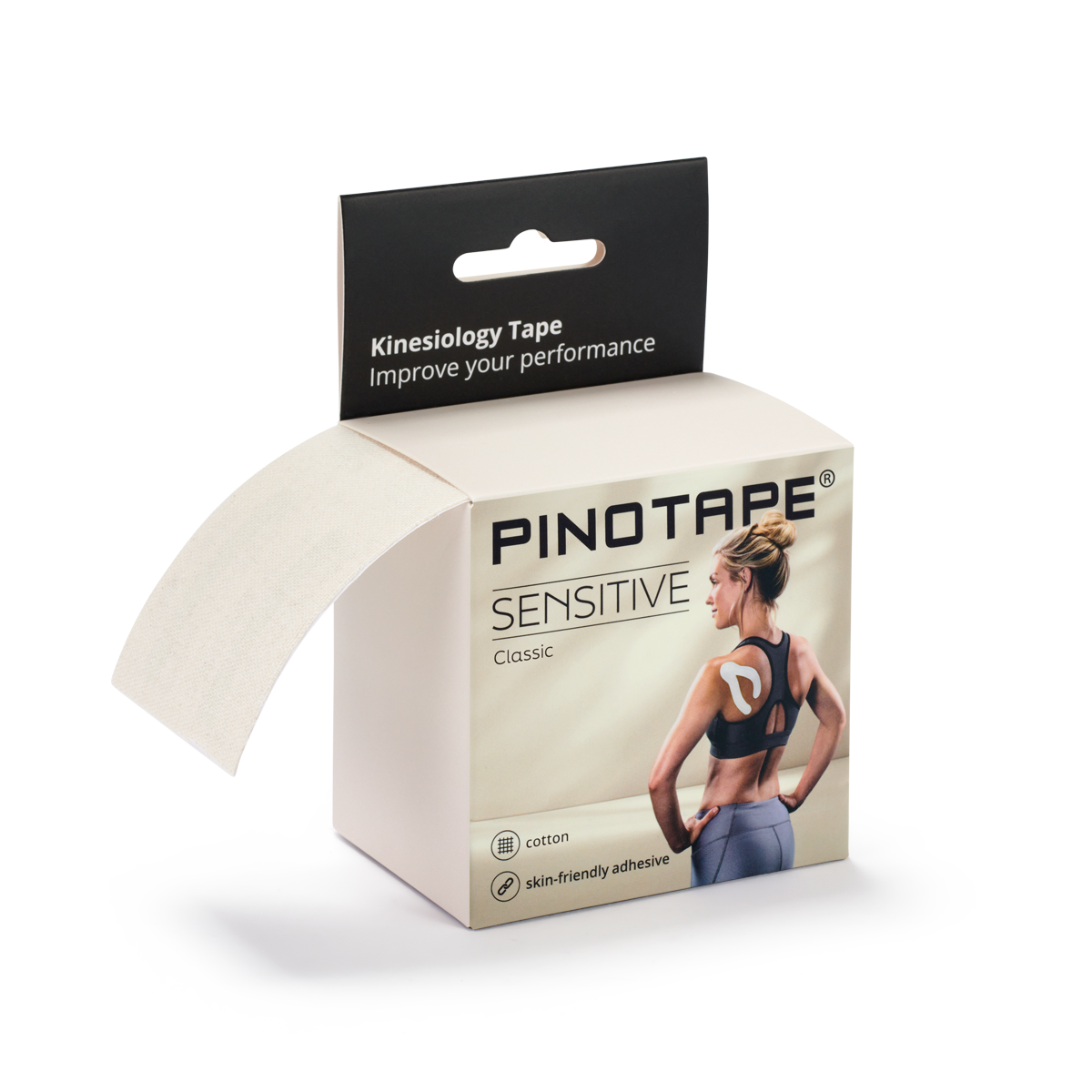 PINOTAPE Sensitive Classic pentru piele sensibilăAceastă bandă kinesiologică, special creată pentru pielea sensibilă, este destinată aplicării metodelor de taping funcțional și reflexogen și se adaptează perfect nevoilor persoanelor active. Datorită utilizării sale universale și calității de încredere, este ideală atât în fizioterapie, cât și acasă. Adezivul deosebit de delicat, cu timp de fixare de până la cinci zile, asigură o purtare confortabilă și o toleranță bună a pielii. Se îndepărtează ușor de pe piele, fără a lăsa reziduuri. Cutia practică tip dispenser menține ordinea și permite tăierea ușoară a benzii la lungimea dorită.