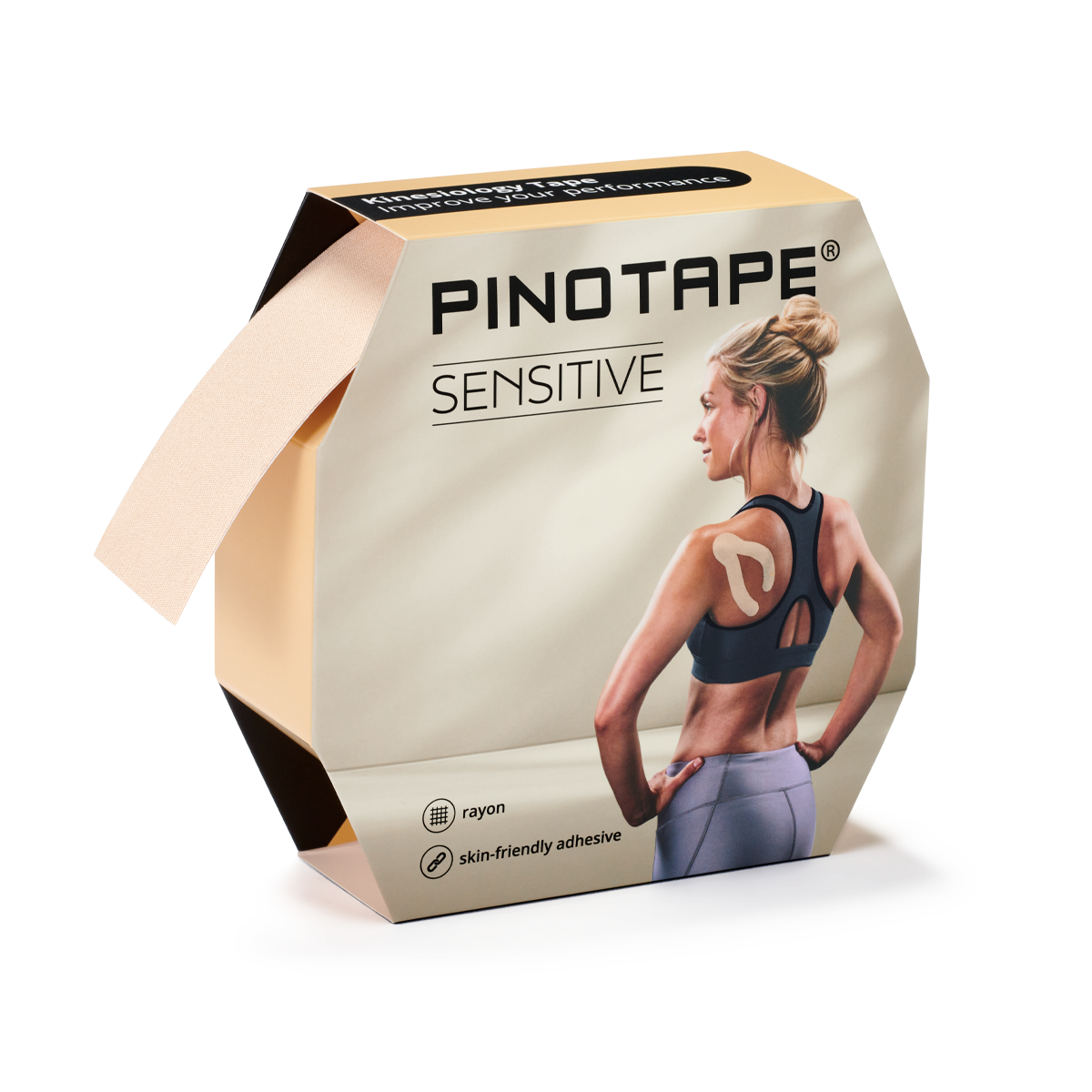 PINOTAPE Sport Sensitive, cu toleranță ridicată pentru piele, este o bandă elastică destinată susținerii și stabilizării musculaturii. A fost special concepută pentru a răspunde nevoilor sportivilor de performanță. Proprietățile benzii kinesiologice asigură un grad maxim de libertate funcțională a mișcării, permițând antrenamente libere și orientate spre recuperare. Prin utilizarea benzii, se urmărește stimularea mecanismelor naturale de auto-vindecare ale organismului în caz de accidentări.¹ Dezvoltată în special pentru sportivii cu piele sensibilă, banda este potrivită pentru orice activitate sportivă. Chiar și după o perioadă lungă de purtare, PINOTAPE își menține tensiunea maximă. Datorită calității înalte și fiabilității, este ideală pentru utilizare în terapie, sport și activități de agrement.