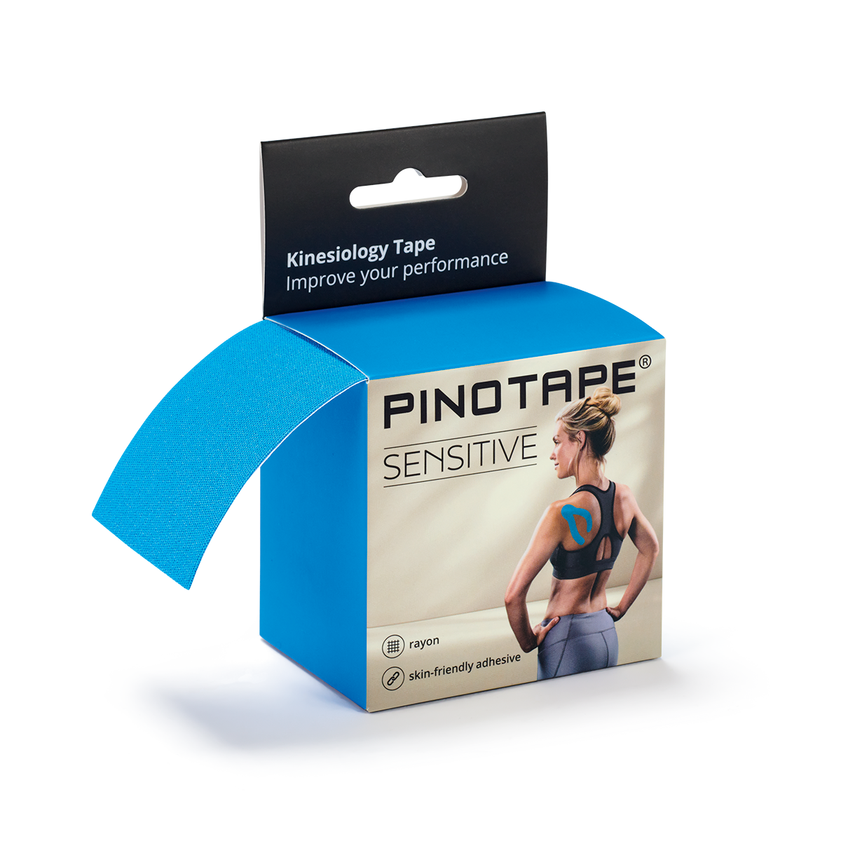 PINOTAPE Sensitive a fost creat special pentru pielea sensibilă și oferă susținere în caz de accidentări sau disconfort. Adezivul său blând, realizat fără rășină și potrivit chiar și pentru persoanele alergice, asigură o fixare confortabilă și prietenoasă cu pielea. Stratul de acoperire acrilic, aplicat în formă de valuri, garantează o aderență fiabilă de până la 5 zile și permite îndepărtarea delicată, fără urme. Cutia practică tip dispenser menține ordinea și facilitează tăierea benzii la lungimea dorită. PINOTAPE este sinonim cu benzi kinesiologice de înaltă calitate, apreciate atât de sportivi profesioniști, cât și de utilizatorii de zi cu zi.