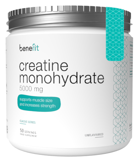Creatina Benefit este formulată din creatină monohidrată premium, cu absorbție optimizată, fiind alegerea ideală atât ca supliment pre-workout, cât și post-workout.