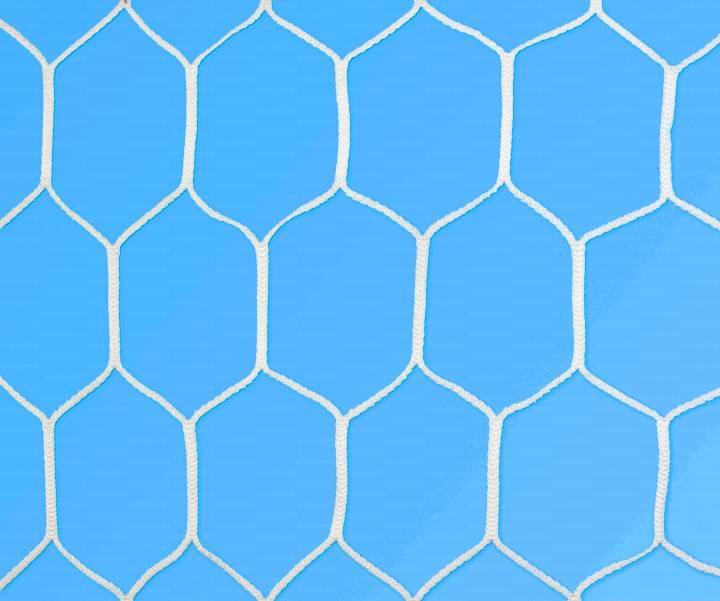 Plasă de fotbal fabricată din împletitură de polipropilenă de înaltă tenacitate, stabilizată UV, termorezistentă, hidrofugă.