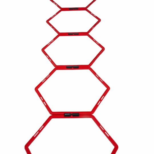 6 inele de antrenament pentru agilitate in forma hexagonală care pot fi utilizate individual, parțial sau total cu un sistem de agrafe ușor de folosit. Ideal pentru antrenamente de viteza, putere, agilitate și flexibilitate.