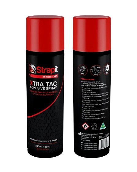 Strapit XTRA-TAC 300 ml este un spray adeziv profesional, conceput special pentru a oferi o fixare sigură și de durată a benzilor. Realizat în Australia, în urma cercetării și experienței unei echipe de fizioterapeuți, acest produs se remarcă prin eficiență și calitate superioară.