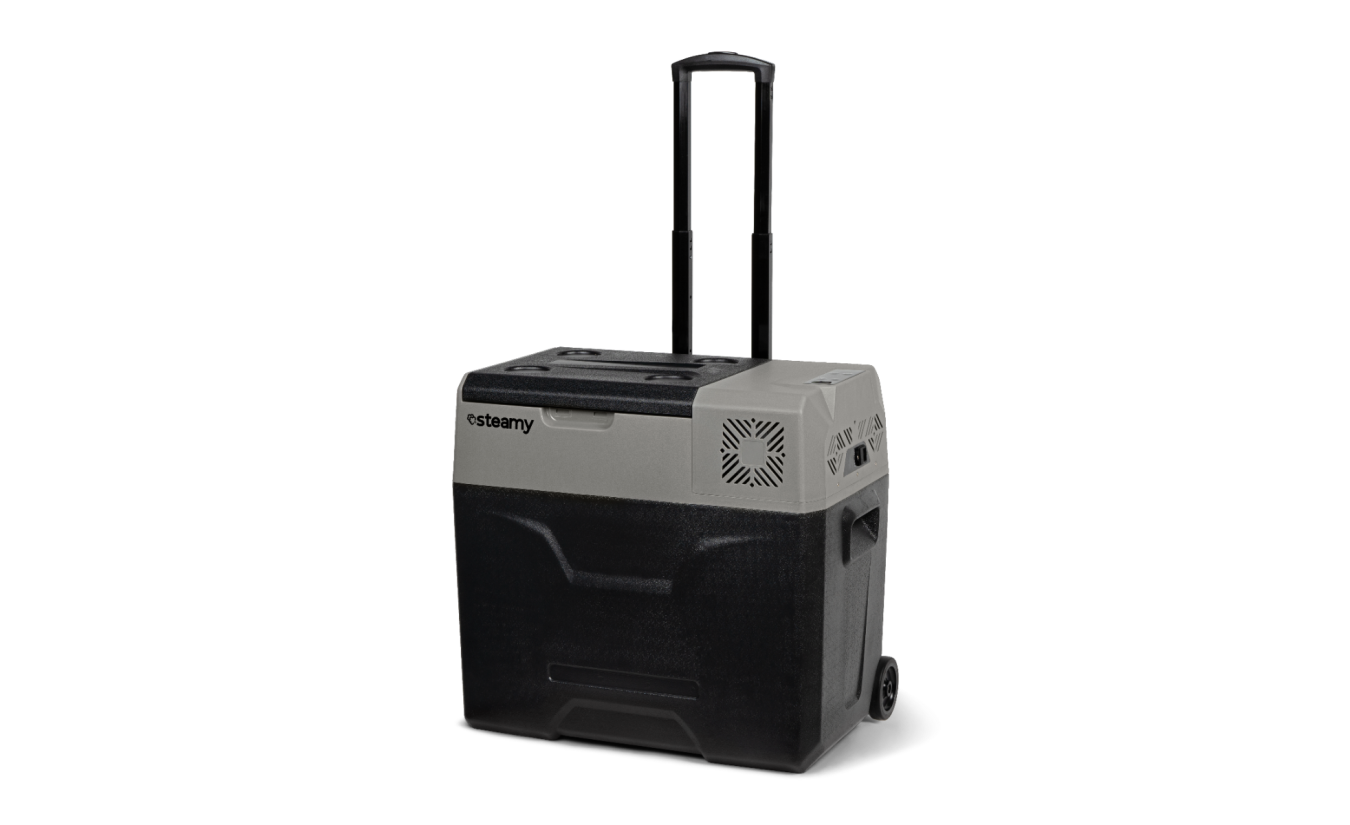 Roțile și mânerul telescopic oferă mobilitate și comoditate maxime. În interiorul lăzii se află un compresor puternic care permite reglarea temperaturii între -20℃ și +20℃. Poți face acest lucru chiar și de la distanță prin intermediul aplicației Steamy Cool. Lada frigorifică este izolată pe toate părțile cu spumă izolatoare, ceea ce o face extrem de eficientă pentru răcire și capabilă să mențină fără efort temperatura dorită, conservând optim conținutul.